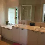 Along with a sofa set and a writing table, Villa Avec Piscine Petanque Ping-Pong Garage Pres Golf Plage includes a fireplace. In-room entertainment includes a TV set and Wi-Fi, while such comforts as an iron with ironing board are also provided for added comfort. The villa comes with a bathroom with a walk-in shower, a separate toilet, and a bath. Bathrooms also feature a hairdryer for added comfort.